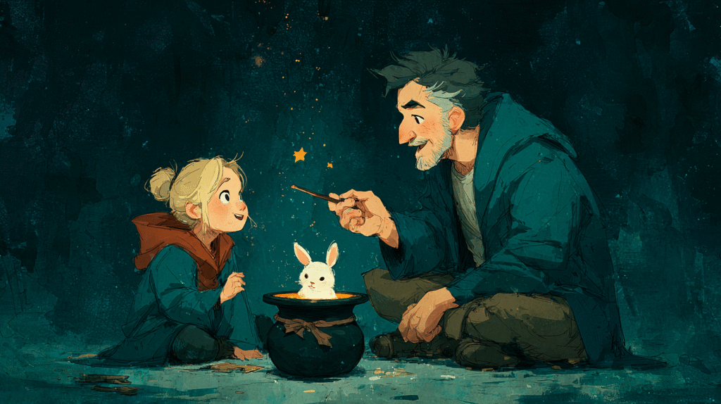 איך זה נראה בפועל: ילד: "אני רוצה ארמון קסום!" הורה: "איזה סוג קסם? ומי גר בארמון?" ילד: "קסם שמשנה צבעים! וגרה שם נסיכה שיכולה לדבר עם בעלי חיים!" הורה: "בואו נתאר את זה ל-AI: 'ארמון קסום שמשנה צבעים, שבו גרה נסיכה ידידותית שמדברת עם בעלי חיים, בסגנון של איור ספר אגדות…"